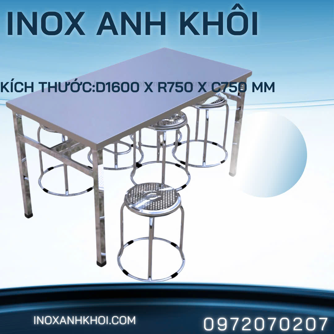 Chất liệu inox cao cấp: Toàn bộ bàn và ghế đôn đều được làm từ inox 201 hoặc 304 chống gỉ, giúp sản phẩm bền bỉ, dễ lau chùi và không bị ăn mòn theo thời gian.