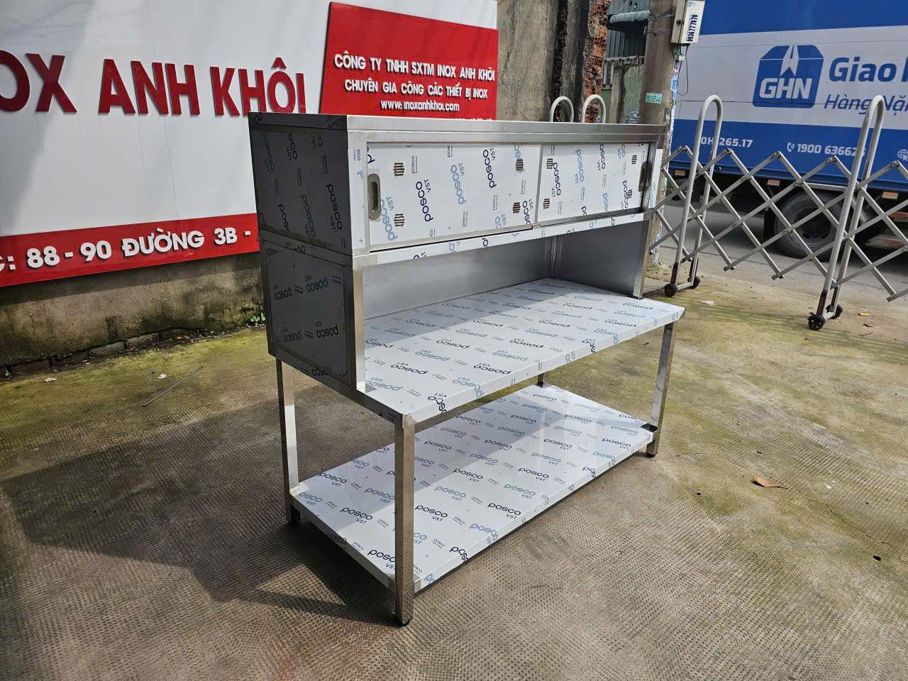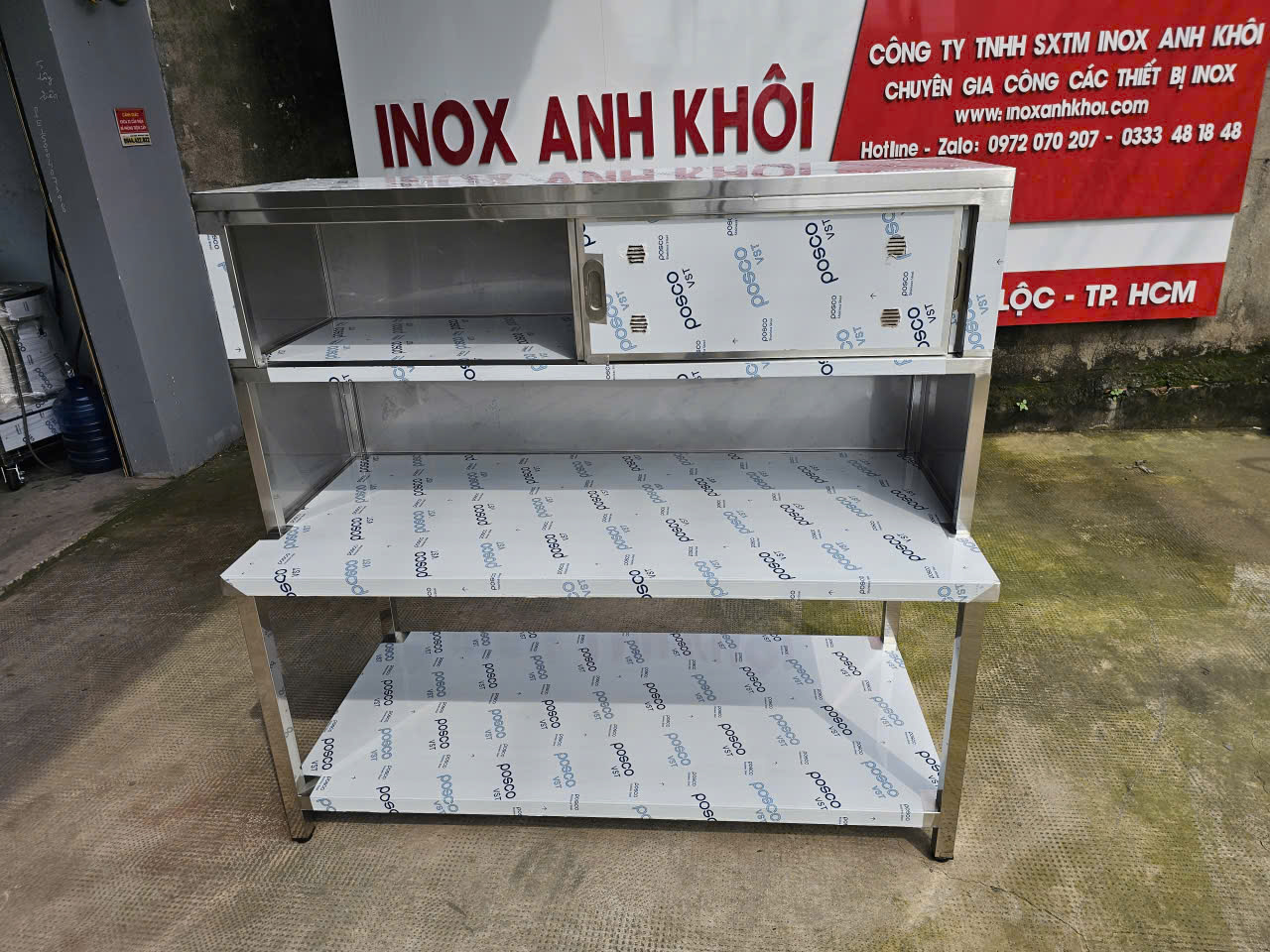 1. Giới thiệu sản phẩm bàn tủ inox 304 cánh lùa phía trên