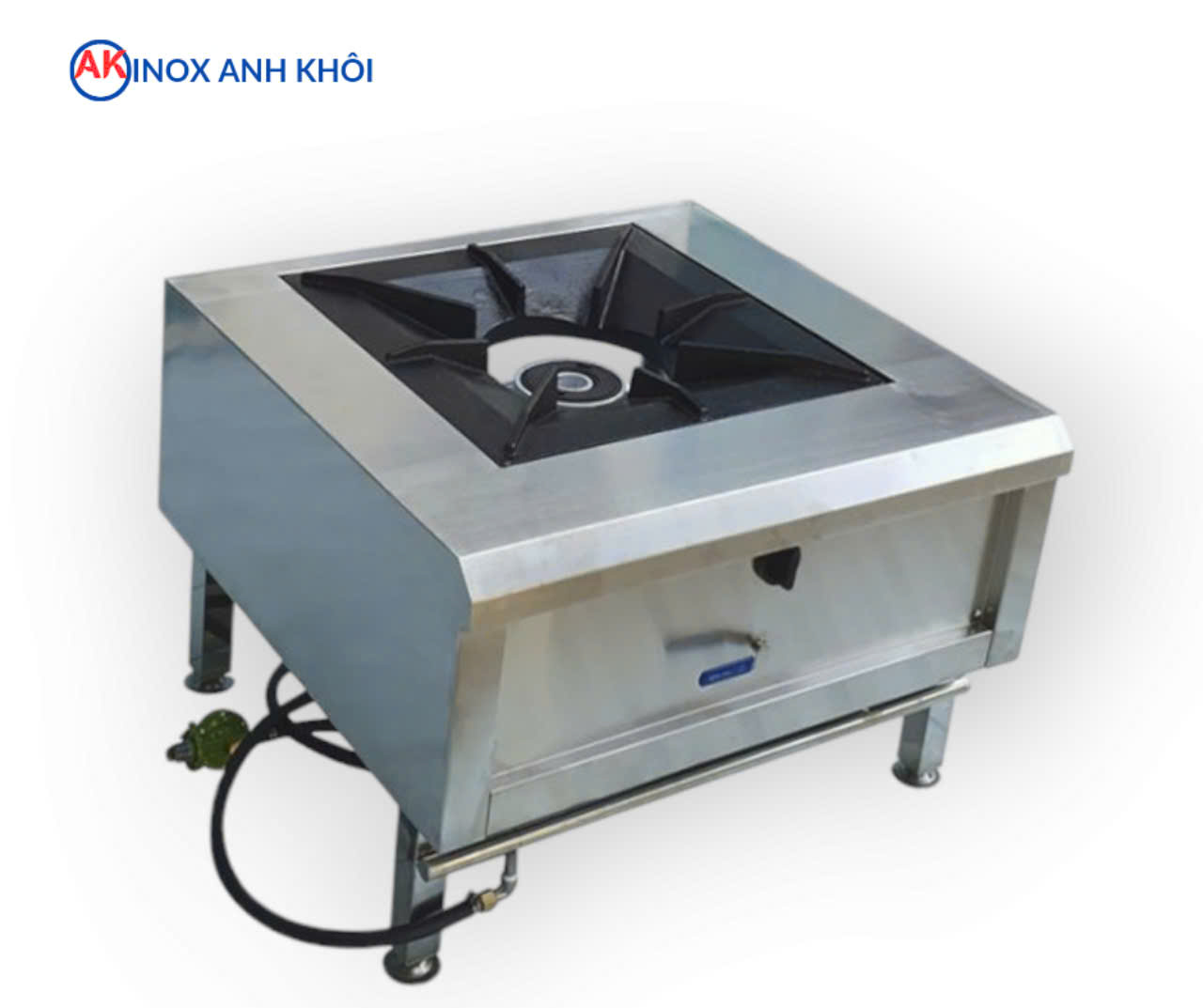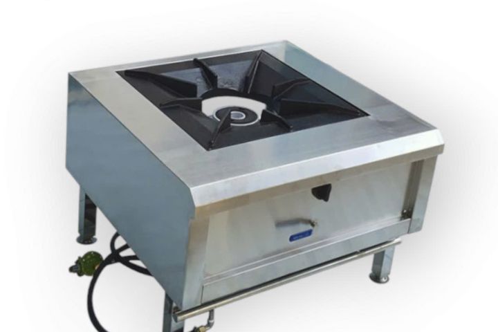 Bếp hầm 1 họng không có gáy inox 304 có thiết kế tối giản nhưng hiệu quả, đáp ứng được nhu cầu sử dụng thường xuyên trong các nhà bếp lớn. Dưới đây là các đặc điểm cấu tạo chính của bếp:
