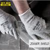 Găng Tay Chống Jogger Shield có cấu tạo từ sợi HPPE (High performance polyethylene) với độ dày cao theo tiêu chuẩn EN388:2003. Găng tay Jogger Shield giúp bạn dễ làm việc với kính, mảnh thủy tinh, gạch men, tôn, tấm thép...