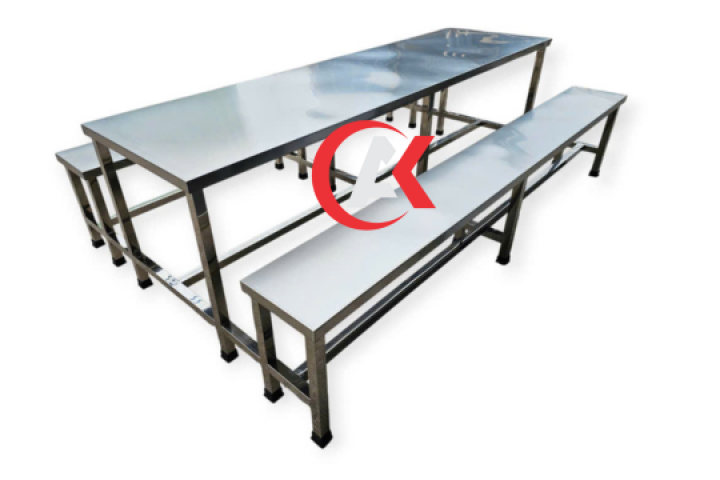 Kiểu ghế: Ghế băng liền, có tựa hoặc không tựa tùy nhu cầu, cố định chắc chắn với khung bàn.