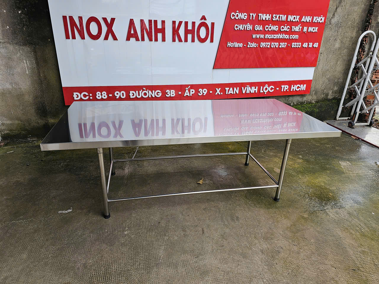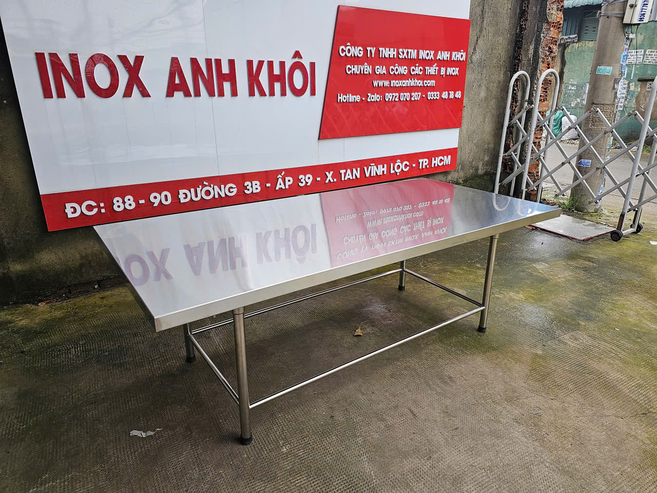 Inox Anh Khôi chuyên gia công bàn lắp ráp thao tác chế biến thực phẩm inox 304 loại 1, được thiết kế phù hợp cho các khu bếp công nghiệp, nhà hàng, khách sạn, xưởng sản xuất thực phẩm và các cơ sở chế biến thủy – hải sản.