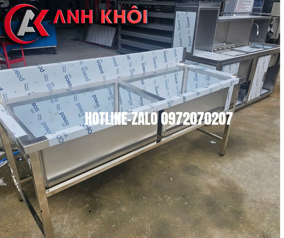 Chậu rửa inox 2 hộc lớn là thiết bị không thể thiếu trong các khu bếp công nghiệp, nhà hàng, quán ăn, trường học hay bệnh viện. Với thiết kế gồm hai hộc rửa riêng biệt, sản phẩm giúp phân chia khu vực sơ chế và rửa chén đĩa một cách hợp lý, đảm bảo vệ sinh an toàn thực phẩm và nâng cao hiệu quả công việc. Dịch vụ gia công chậu rửa inox 2 hộc lớn theo yêu cầu sẽ giúp bạn sở hữu thiết bị phù hợp với không gian và nhu cầu sử dụng thực tế.