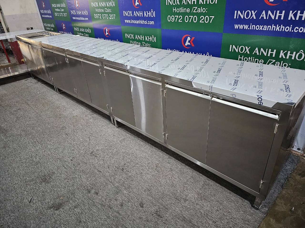 - Bàn bếp inox , bàn chặt bằng inox , bàn bếp inox sơ chế nhà hàng do chính tay inox anh khôi sản xuất và gia công theo yêu cầu .