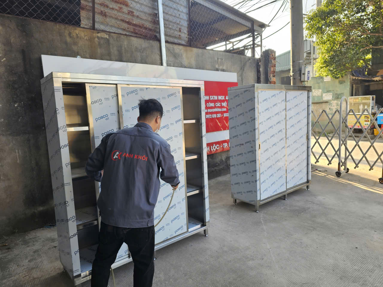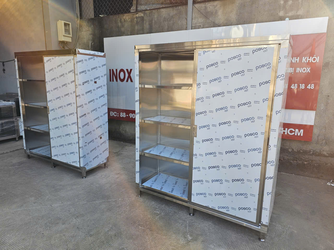 Tủ Inox 304 4 Tầng Cửa Lùa – Giải Pháp Lưu Trữ Bền Bỉ, Tiết Kiệm Không Gian