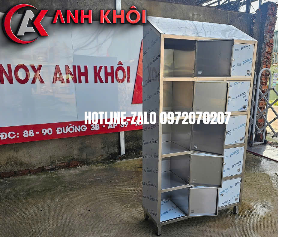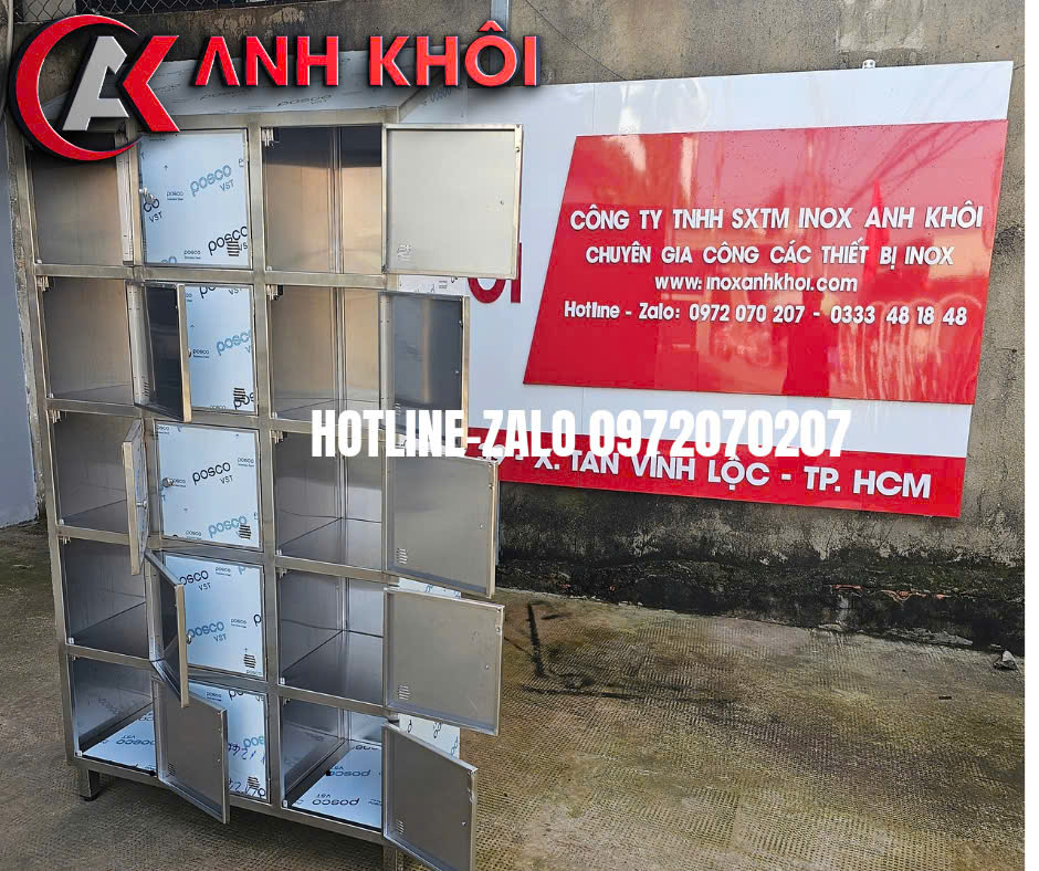 GIA CÔNG TỦ LOCKER INOX MÁI XÉO 15 NGĂN