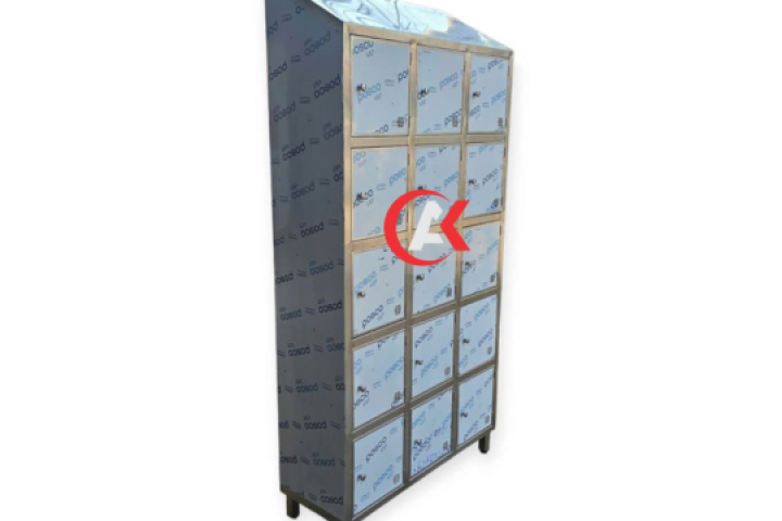 Tủ locker mái xéo 15 ngăn do Inox Anh Khôi gia công là dòng sản phẩm chuyên dụng dành cho nhà máy, trường học, phòng tập gym, khu công nghiệp, khu cách ly, xưởng sản xuất...