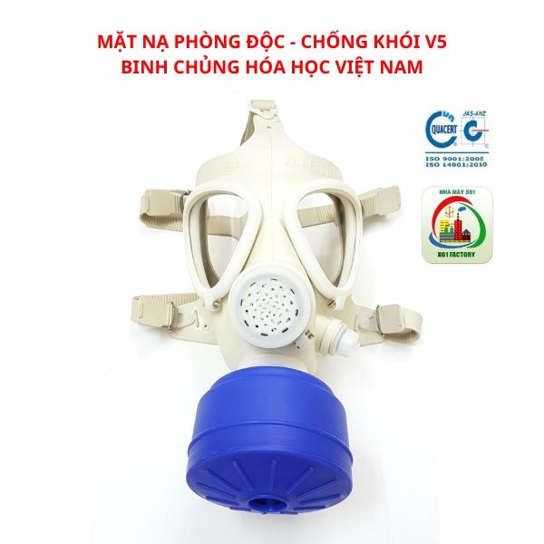 Mặt nạ phòng độc quân đội V5 một sản phẩm của Nhà máy Binh chủng hóa học Việt Nam dưới sự quản lý của Bộ Quốc phòng. Được thiết kế để chống lại hiểm họa từ các chất độc hại, sản phẩm này không chỉ phổ biến trong quân đội mà còn được ứng dụng rộng rãi trong các lực lượng công an và các ngành nghề đòi hỏi tiếp xúc với môi trường độc hại.