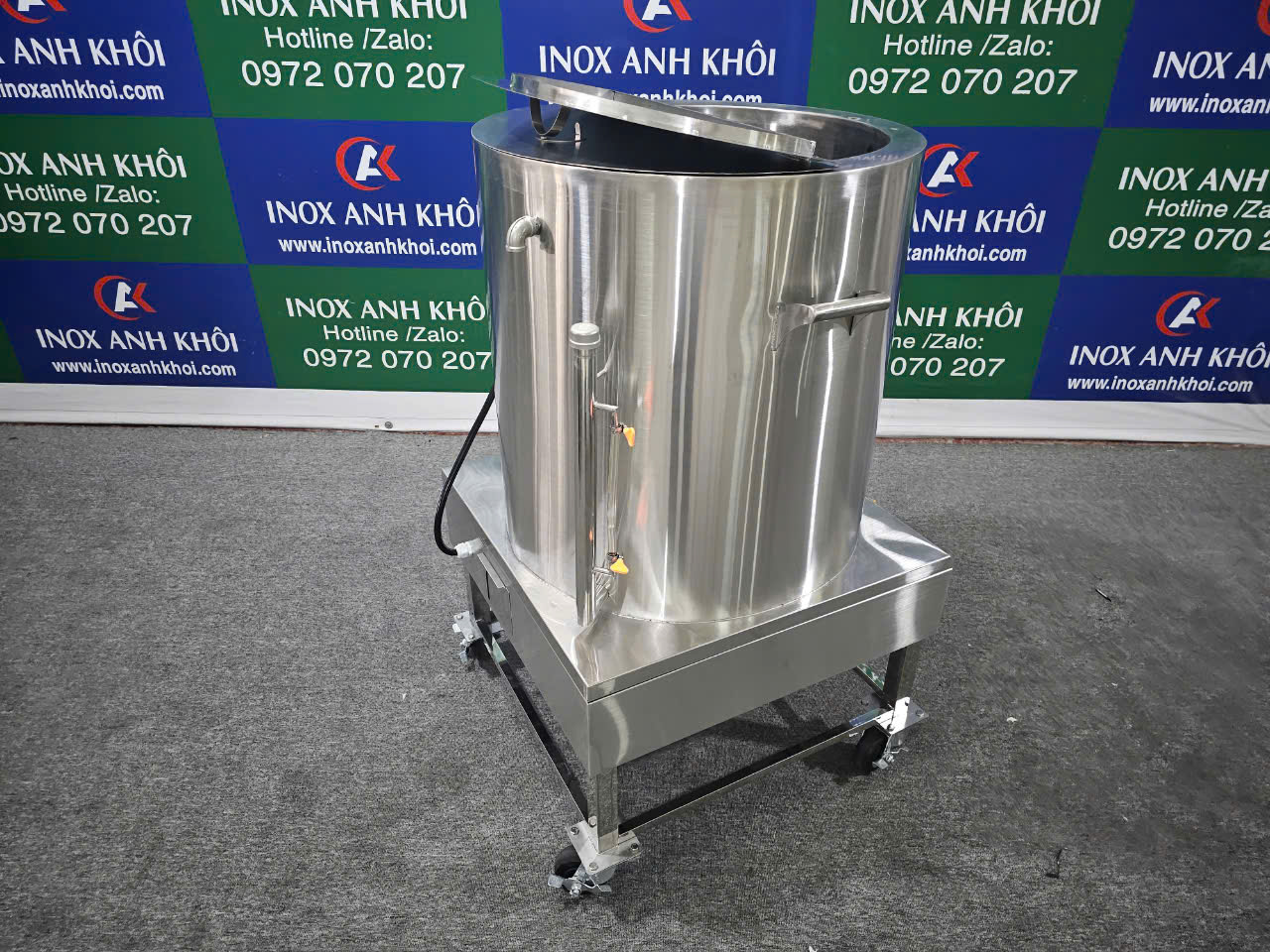 Nồi Nấu Cháo 150 Lít Điện Liền Inox 304 Có Bánh Xe NNC01304