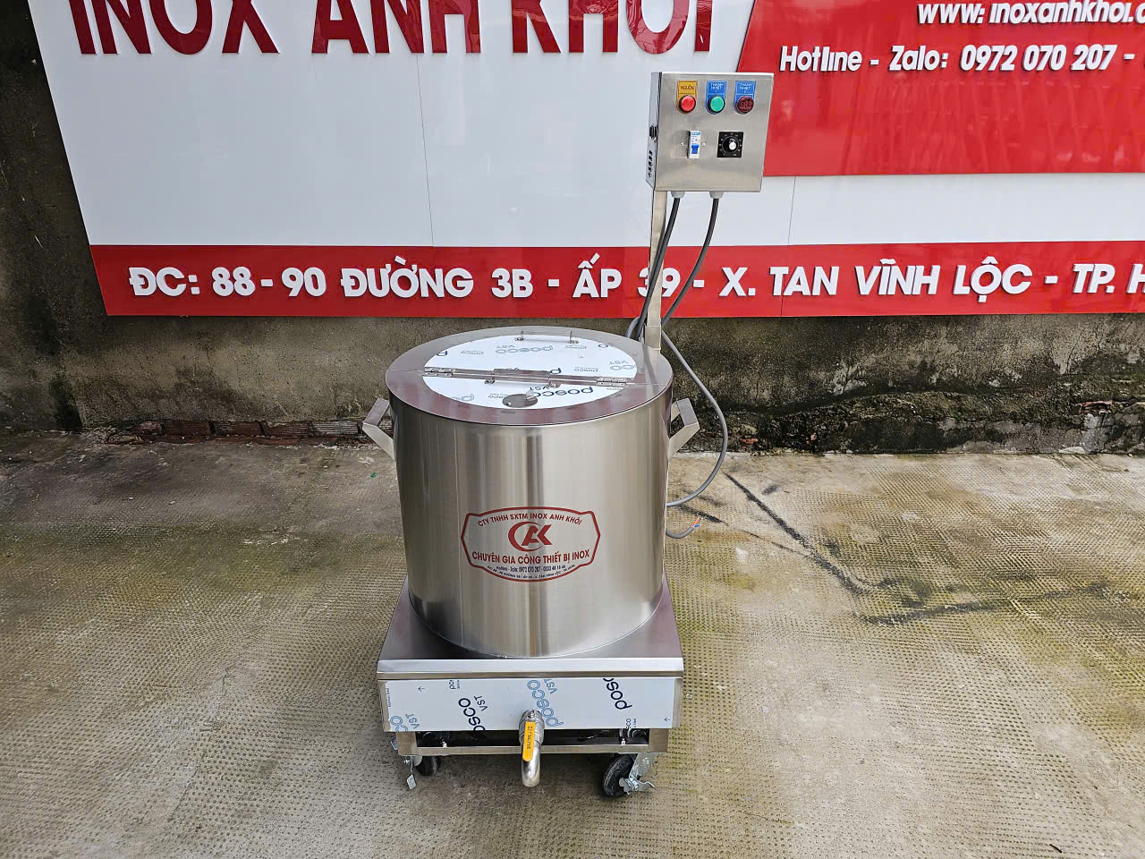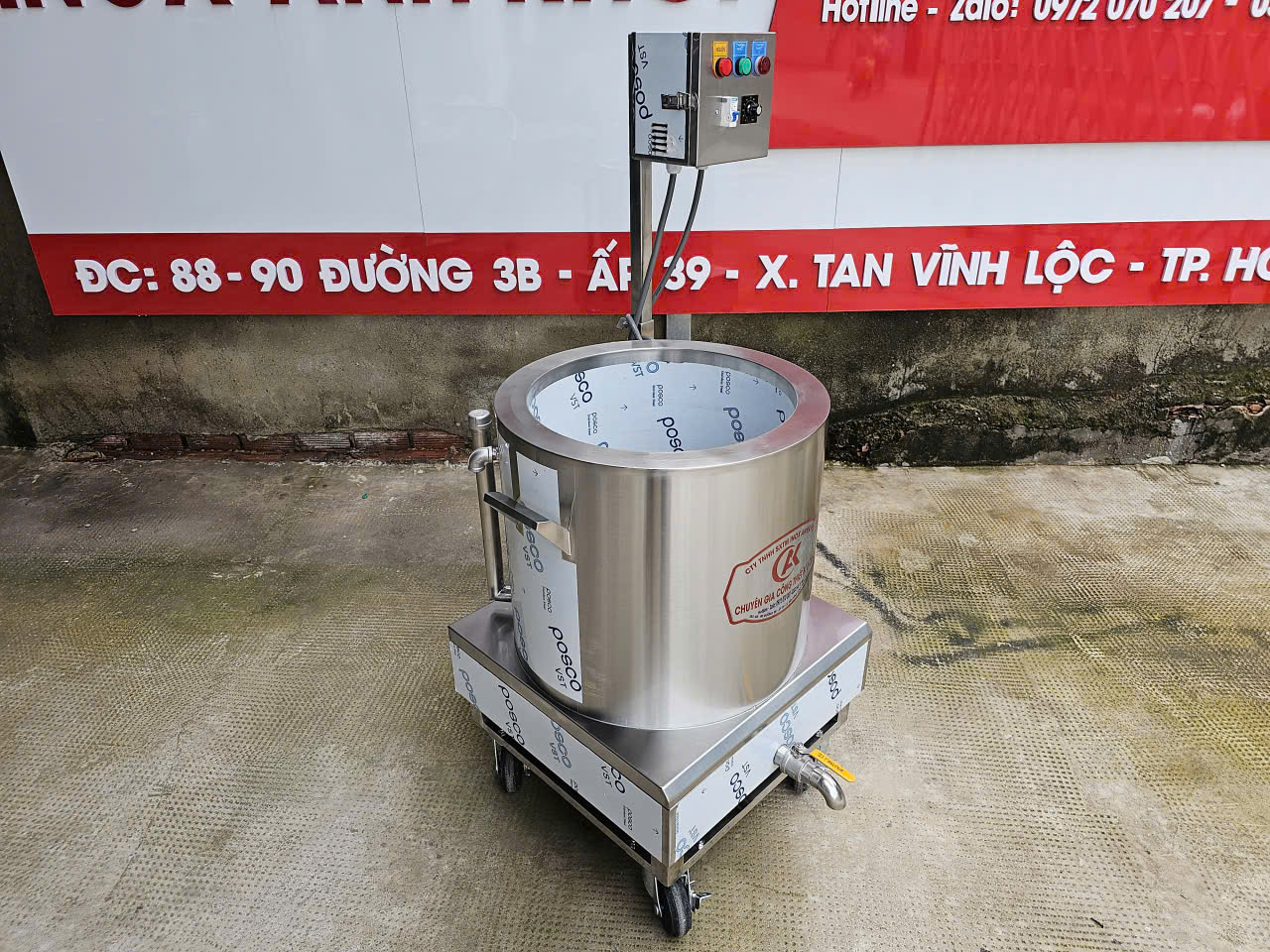 Nồi nấu cháo 50 lít bằng điện inox 304 100% là thiết bị bếp công nghiệp hiện đại, chuyên dùng để nấu cháo, súp, hầm xương, ninh nước lèo với dung tích lớn.