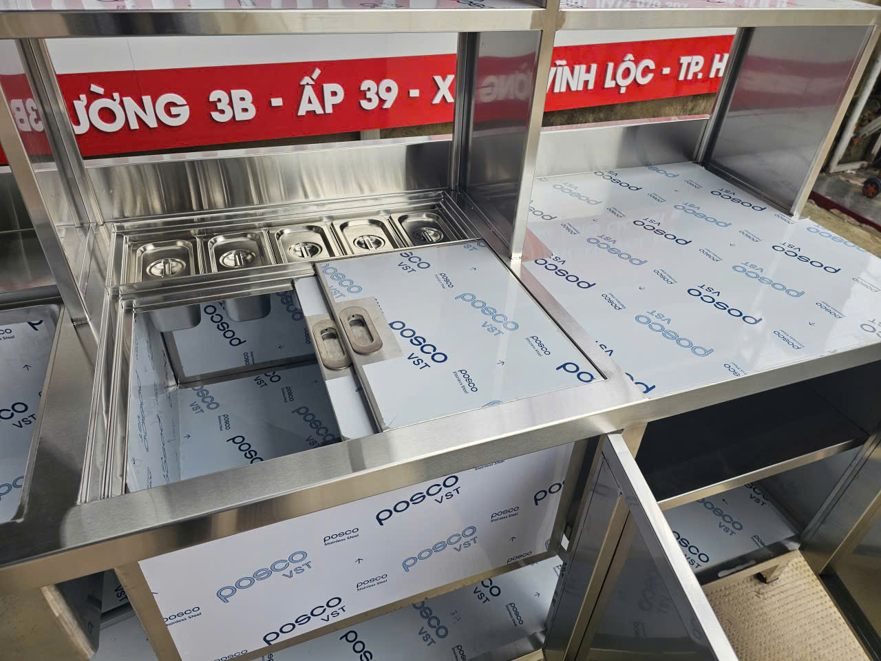 Dễ tùy chỉnh thiết kế theo yêu cầu (thêm khay topping, tăng kích thước, đổi vị trí chậu rửa...).
