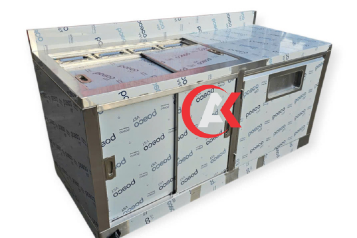 Quầy được gia công hoàn toàn từ inox 304, nổi bật với các ưu điểm:
