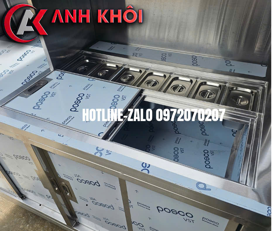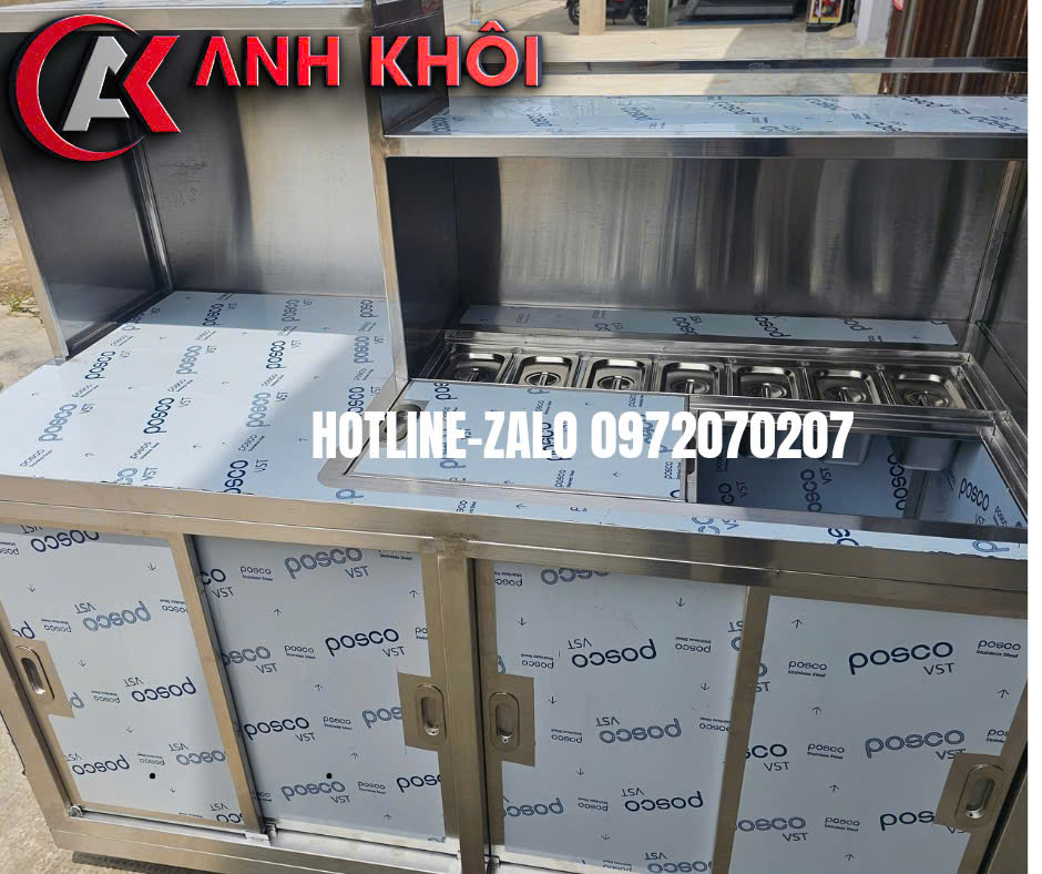 Tên sản phẩm: Quầy pha chế trà sữa inox 304 có 8 khay topping