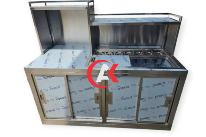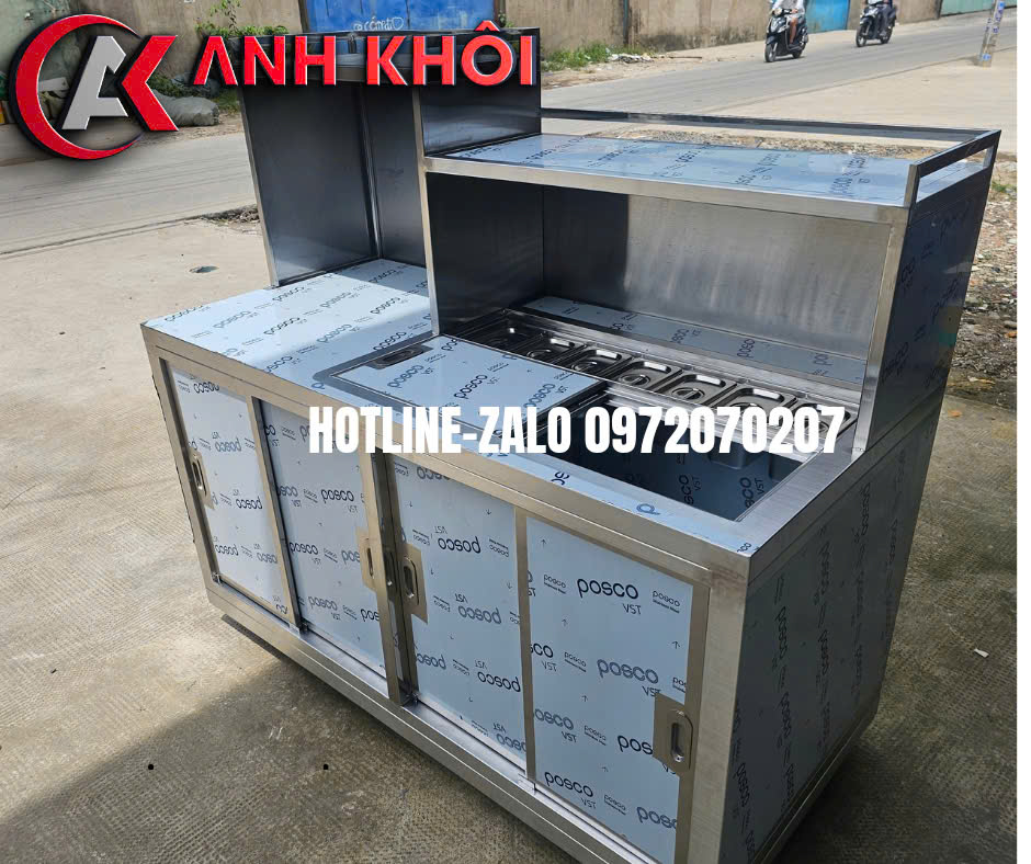 Chất liệu inox 304 cao cấp: Không gỉ, dễ lau chùi, bền đẹp theo thời gian – phù hợp với môi trường ẩm ướt của khu vực pha chế.