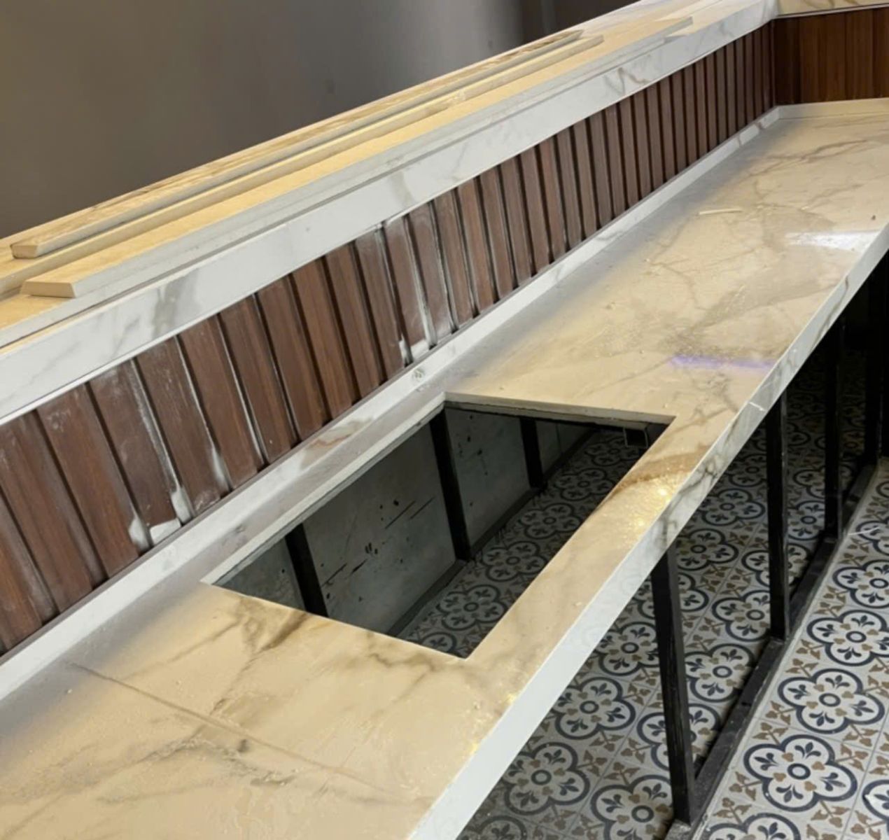 Ngăn bảo quản đồ: Thường được sử dụng để đặt các chai, hộp nguyên liệu hoặc vật dụng khác phục vụ pha chế, giúp tiết kiệm không gian và đảm bảo thuận tiện khi làm việc.