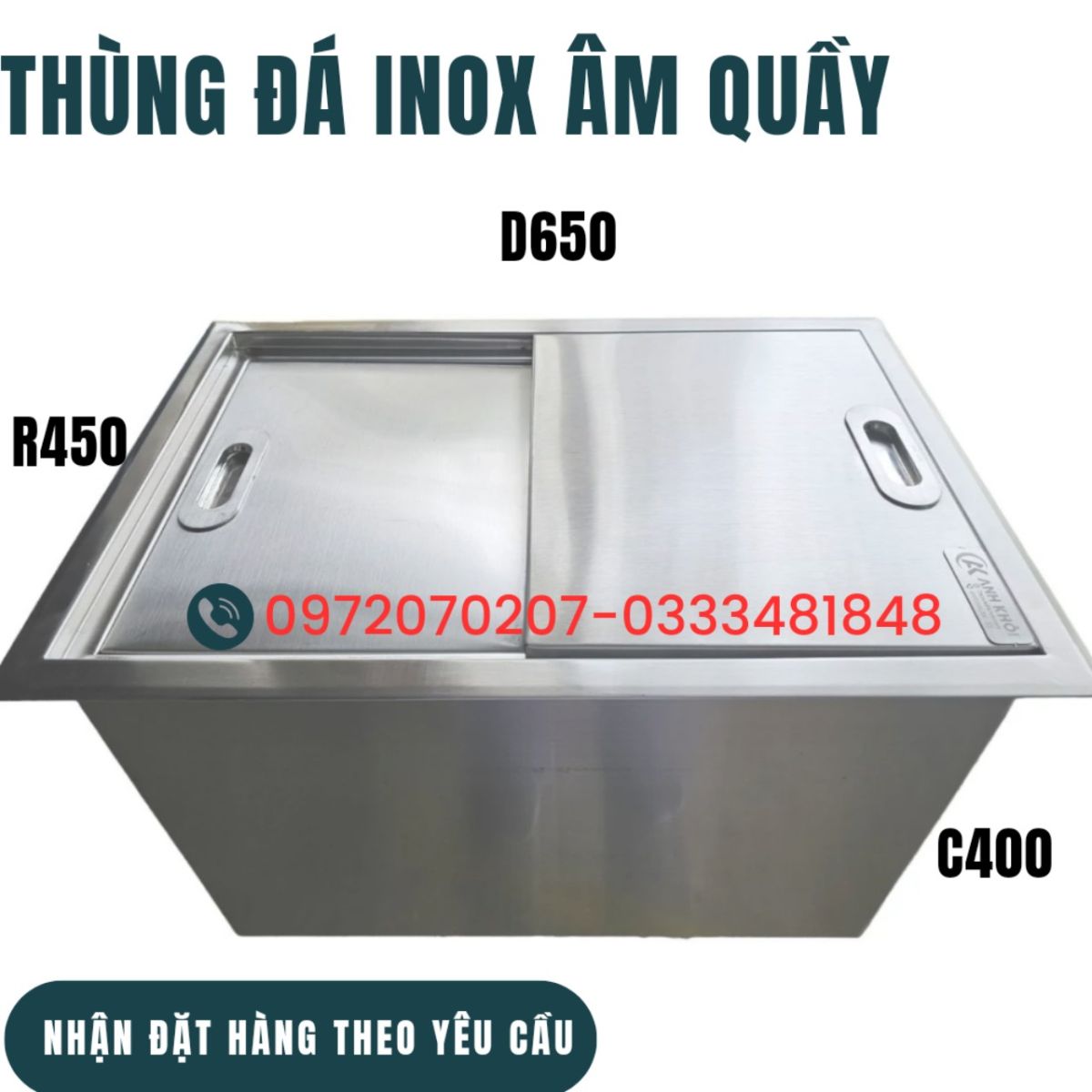 .Thùng đá inox có nắp đậy , bên trong có đổ foam nên cách nhiệt rất tốt , hạn chế độ tan chảy của đá . tùy vào yêu cầu , cách bày trí của các quán quầy bar có thể bố trí , yêu cầu sản xuất các sản phẩm cho phù hợp .