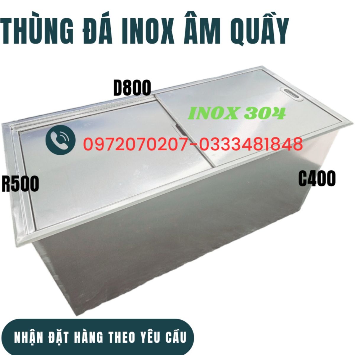 .Thùng đá inox có nắp đậy , bên trong có đổ foam nên cách nhiệt rất tốt , hạn chế độ tan chảy của đá . tùy vào yêu cầu , cách bày trí của các quán quầy bar có thể bố trí , yêu cầu sản xuất các sản phẩm cho phù hợp .