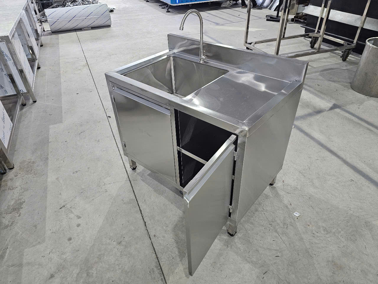 Tủ chậu rửa inox 304 kích thước 1000x600x800/950mm là lựa chọn lý tưởng cho các khu bếp công nghiệp, quán ăn, nhà hàng, hay thậm chí gia đình cần một thiết bị rửa tiện nghi, sạch sẽ và bền bỉ. Sản phẩm được thiết kế tối ưu, tích hợp giữa chậu rửa và tủ chứa bên dưới, giúp tiết kiệm không gian và tăng tính thẩm mỹ cho khu bếp.