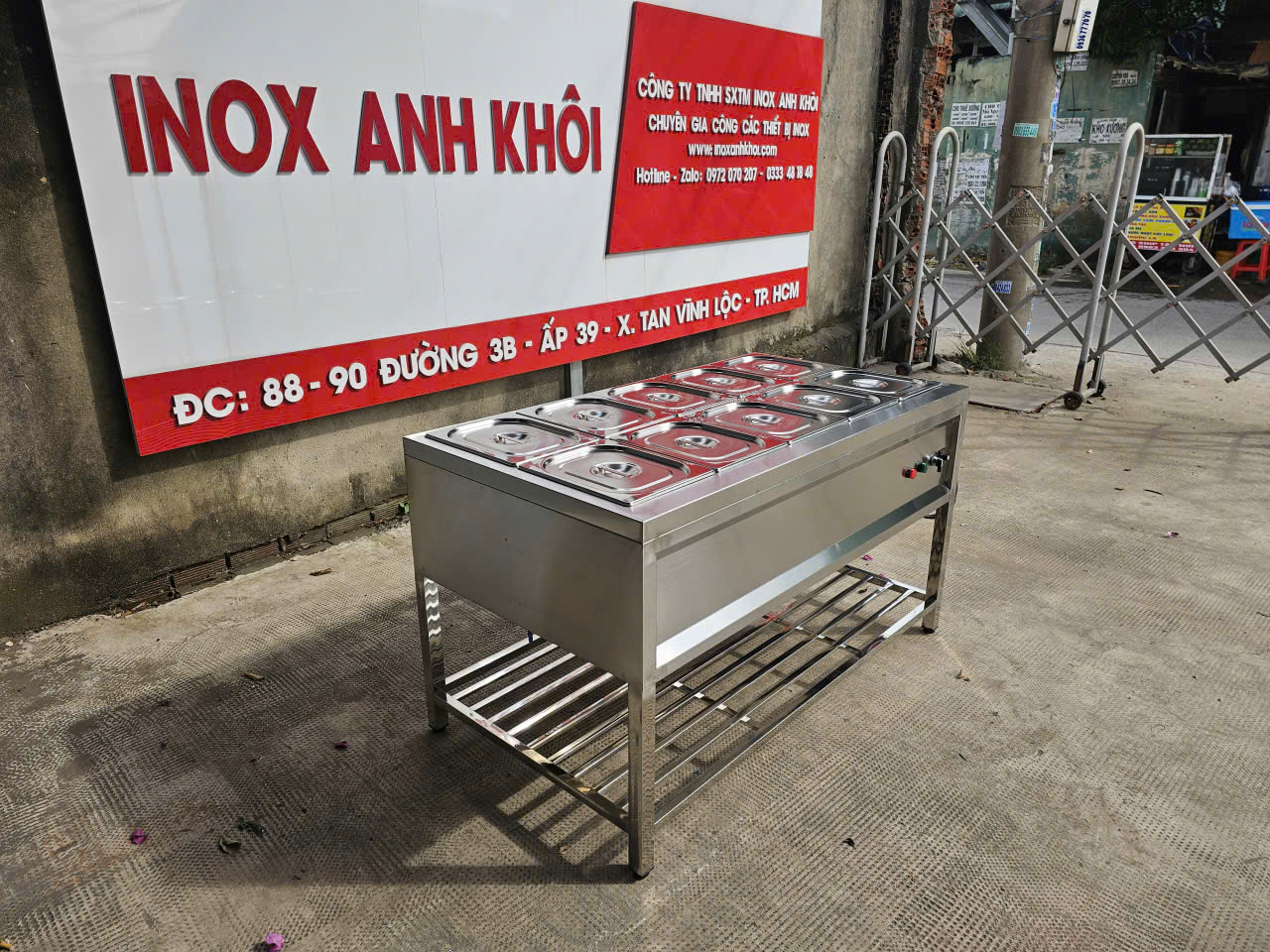 Inox 304 không bị ăn mòn, không bị hoen gỉ khi tiếp xúc với nước hoặc nhiệt độ cao. Đây là chất liệu tiêu chuẩn cho thiết bị bếp công nghiệp, đảm bảo an toàn vệ sinh thực phẩm và tuổi thọ lâu dài.