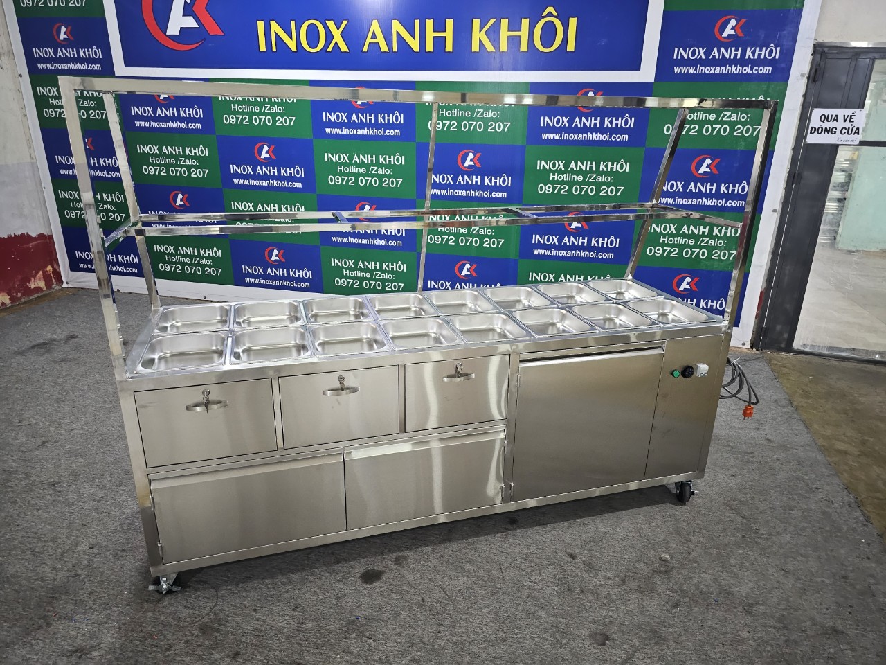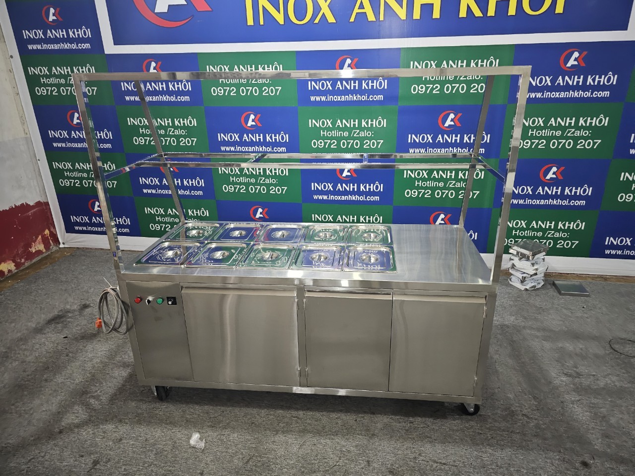 Với tủ hâm nóng 8 khay dài 1m20, làm từ inox 100%, bạn sẽ có một giải pháp tối ưu cho việc giữ ấm và bảo quản thực phẩm.