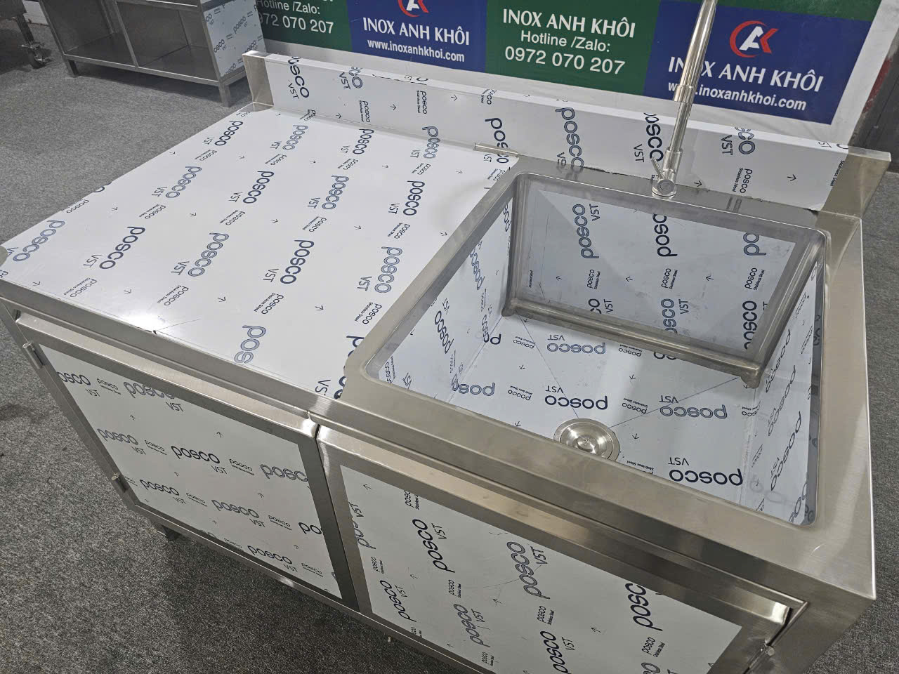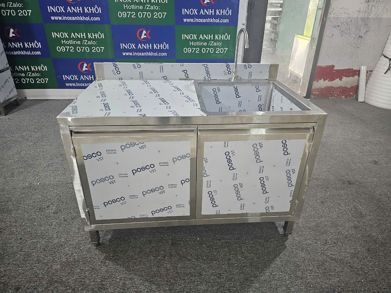 Với chiều dài 1m20, tủ inox có chậu rửa này là sự lựa chọn lý tưởng cho các không gian bếp vừa và nhỏ. Thiết kế tủ thường bao gồm các ngăn đựng đồ bên dưới và chậu rửa phía trên, giúp người dùng có thể dễ dàng vệ sinh thực phẩm và đồ dùng nhà bếp mà không cần thêm khu vực rửa riêng. Thiết kế tiện lợi này tối ưu không gian, giúp bếp trở nên gọn gàng và ngăn nắp hơn.