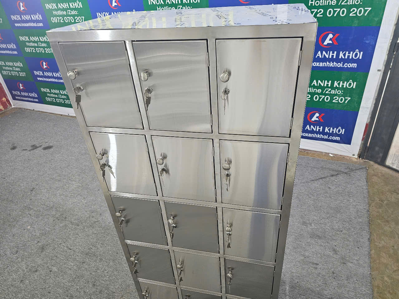 Nếu bạn đang cần một giải pháp lưu trữ chắc chắn – bền bỉ – đẹp mắt thì tủ locker 15 ngăn inox 304 là lựa chọn lý tưởng. Vui lòng liên hệ chúng tôi để được tư vấn, báo giá và đặt hàng nhanh chóng.